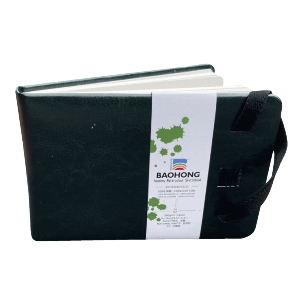 The Baohong Academy Sketchbooks features a crisp white, cold pressed 300gsm paper that's acid free, 100% cotton and gelatine sized. With 24 sheets this paper is suitable for watercolour painting and the hardbound leather look black cover sketchbook with rubber band keeps everything safe when not in use. The Baohong Academy Sketchbook is a great option for creatives during travel or painting on the go outside in plein air, in the studio or during life drawing.