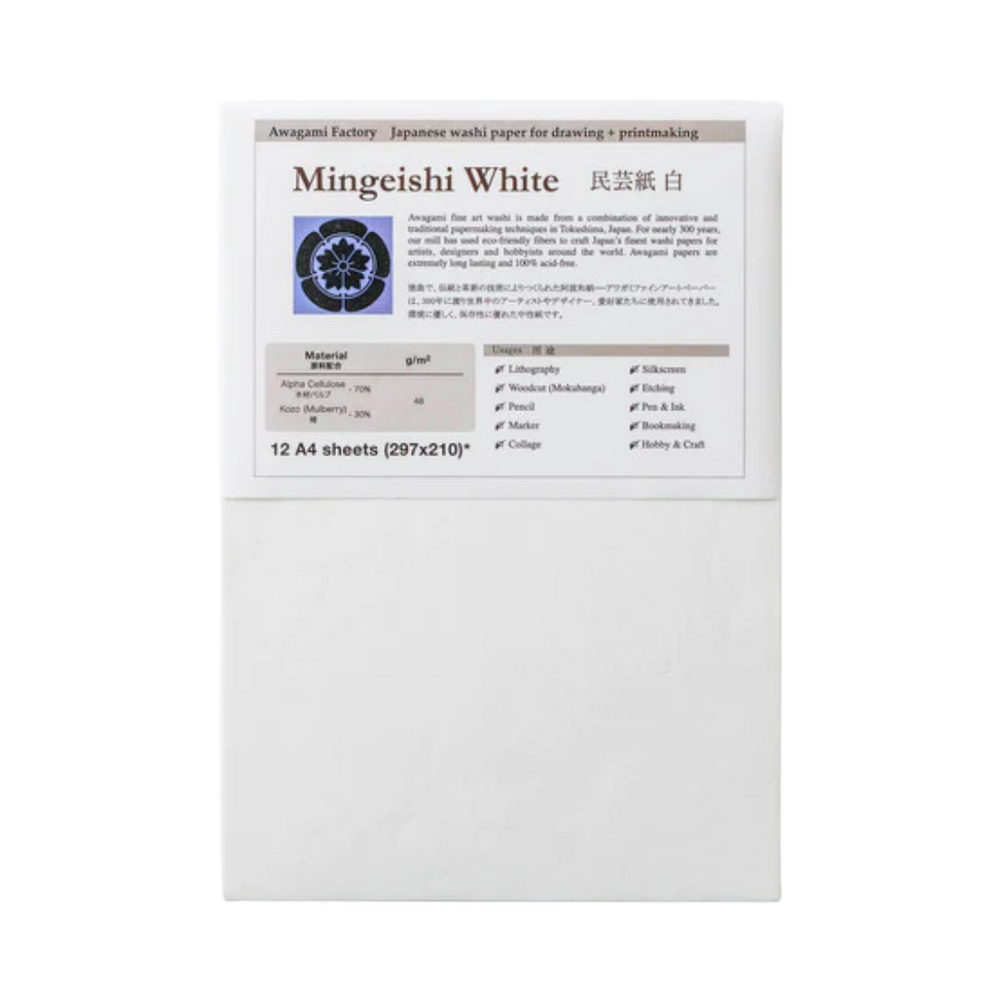A classic washi favored by Japanese artists and craftsmen for centuries. Although Mingeishi’s surface is fairly soft and the sheet is lightweight, this paper exhibits great overall strength and is suitable for printmaking, mixed media artworks and all types of papercrafts.