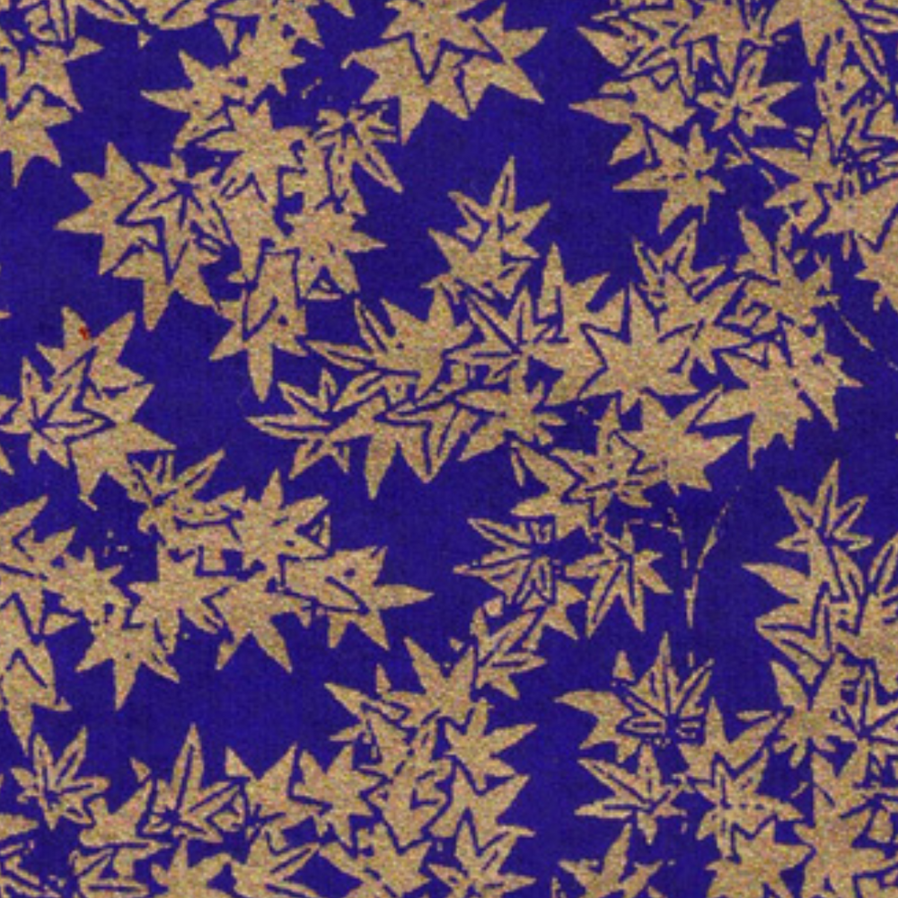Yusen Chiyogami paper is unique to Japan with most Chiyogami produced with a silkscreen technique. These papers feature intricate patterns and are ideal for collages, picture mats for framing, books, scrapbooking, invitations and more.  The CH0276 style features metallic gold maple leaves on a rich purple background.
