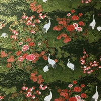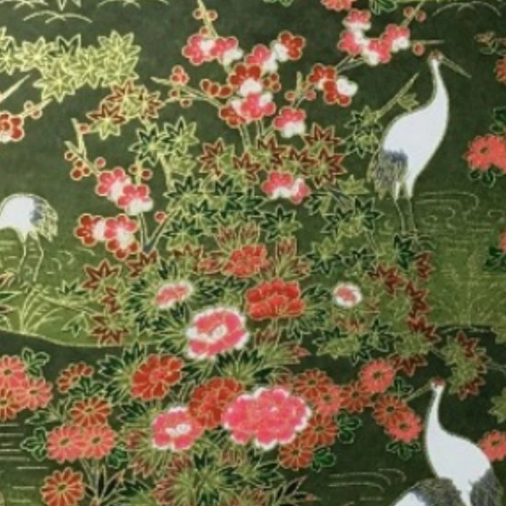 • Cranes and Florals on Olive Green