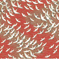 Yusen Chiyogami paper is unique to Japan with most Chiyogami produced with a silkscreen technique. These papers feature intricate patterns and are ideal for collages, picture mats for framing, books, scrapbooking, invitations and more. The CH5531 is a pattern of white cranes floating on a red and gold river.