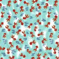 Chiyogami Paper A4 CH6512 Red Goldfish on White and Light Blue