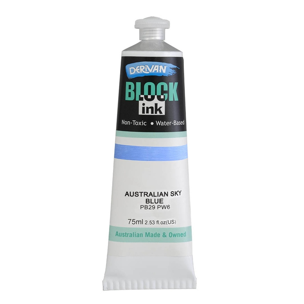 Derivan Block Ink is therefore non-toxic and easy to clean up, while still giving the feel of a professional-grade oil-based printing ink. Wash up all utensils, brayers, blocks and hands with soap and water to clean up. It's also made right here in Australia.