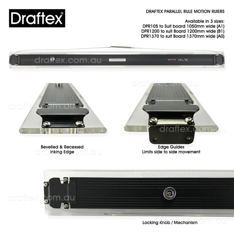 Draftex Parallel Motion Rules are essentially fixed Tee Squares to your drawing board that remain parallel at all times and can be locked in place leaving you free handed for use of other drawing instruments.