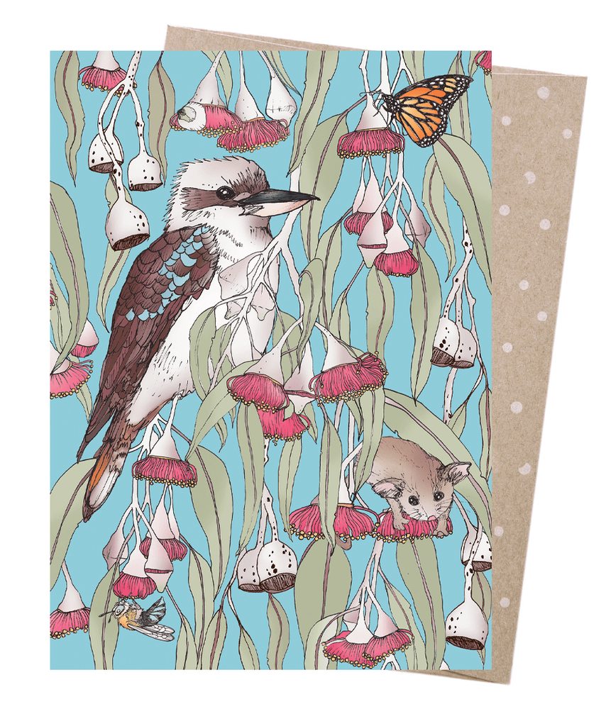 Printed in Australia with vegetable based ink and made from 100% post-consumer waste. Comes with a 100% post-consumer recycled envelope. Carbon offset with our donation to the Yarra Yarra Biodiversity Corridor. Over 10% of profit from every greeting card sold is donated to care for native wildlife and restore habitat. Card and envelope can be recycled or home composted.