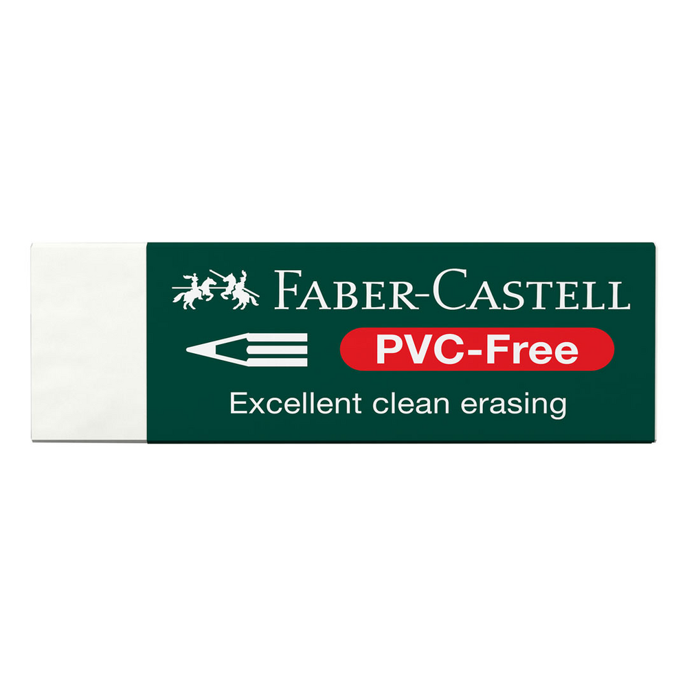 Faber Castells PVC Free erasers are an essential item for students and artists and have a soft feel and provide smear free erasing of blacklead pencils. With a comfort edge for easy use during erasing they're a popular choice for the classroom or studio. These Faber Castell erasers are also PVC free and do not contain harmful phthalate plasticizer. Phthalates have been reported to cause several undesirable effects when exposed to the human body.