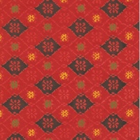 Katazome KA101 features a vibrant pattern of black, yellow green patterns on a red background. Katazome is a traditional Japanese stencil dyeing technique. It is a paste-resist process that is used to dye both cloth and papers. Traditional designs feature many seasonal themes and colour found in Japan, as well as native creature and fauna. Designs include Bamboo, ibis, cherry blossoms, parasols and fans.