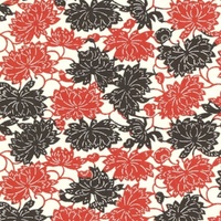 Katazome KA196 features red and black flowers on a creamy white background. Katazome is a traditional Japanese stencil dyeing technique. It is a paste-resist process that is used to dye both cloth and papers. Traditional designs feature many seasonal themes and colour found in Japan, as well as native creature and fauna. Designs include Bamboo, ibis, cherry blossoms, parasols and fans.