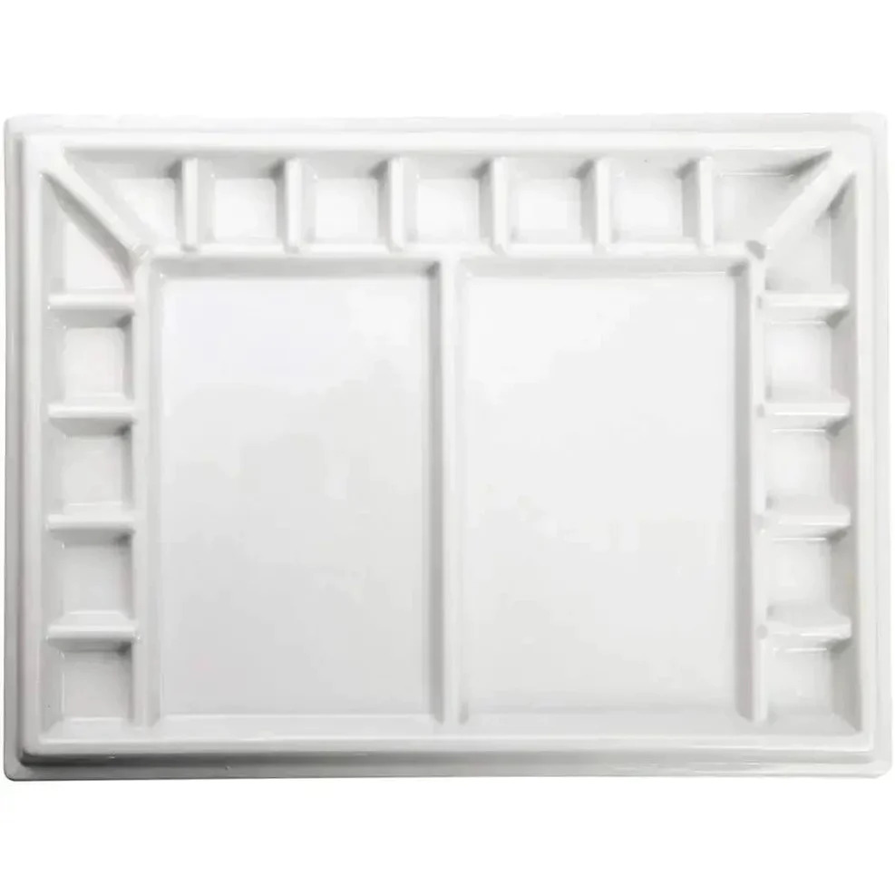 The Meeden 17 Well Porcelain Palette is a heavyweight ceramic palette doesn't slide around during use, allowing artists to focus on their craft. Its smooth, porcelain surface helps to maintain paint moisture.