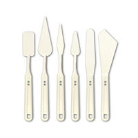 Made from plastic they won't rust with age and are flexible. A handy anti-slip grip means they're sturdy to use even with the most slippery paints. Head of the palette knife is raised off the table when placed down.