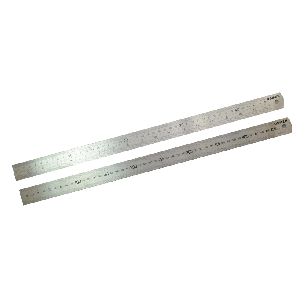 Osmer Stainless Steel rulers are a high quality ruler that includes accurate measurements engraved on both sides of the ruler. One side features centimeters and inches and the other millimeter measurements clearly etched into the surface of the ruler. Osmer Stainless Steel Rulers are great for use in the classroom, office, work spaces and more.