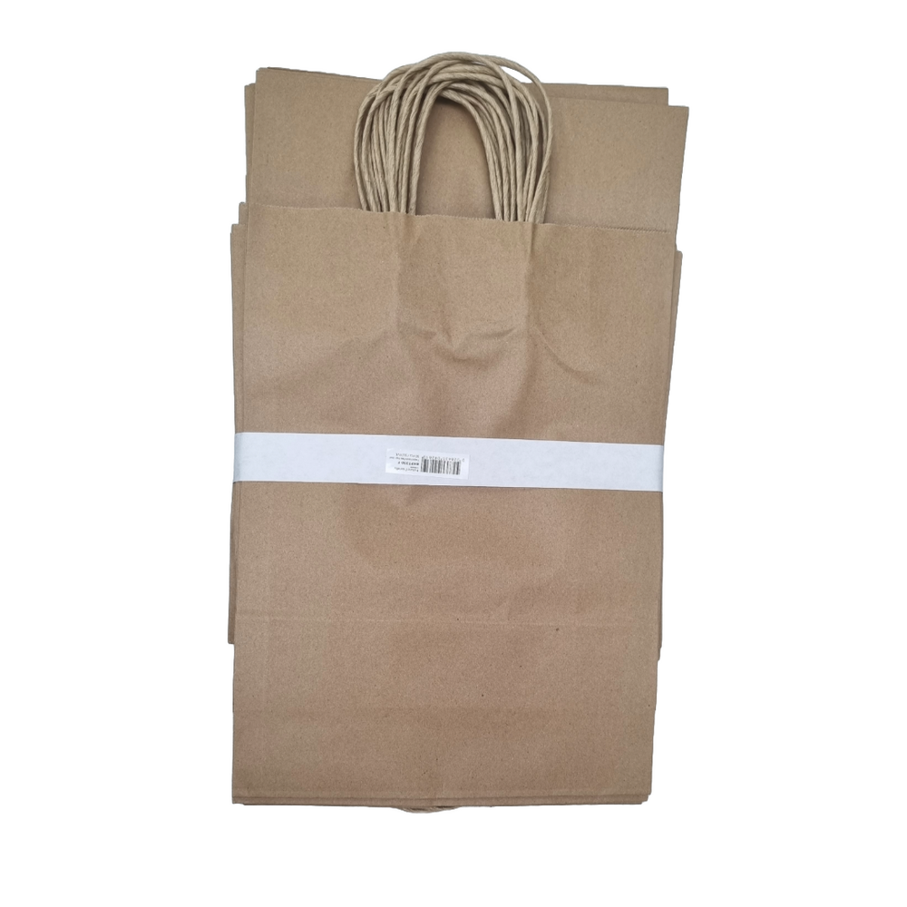 Brown carry bags with string carry handle in a handy pack of 50. Sized at 350x260x110mm, so perfect for school fetes, craft days or parties.