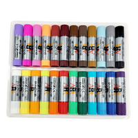 They're easy to pack and store in the tray that comes with every set, making them great for classroom use. The bright, vibrant colours are versatile too and, when pressing lightly, the results look like pastel. When pressing firmly, the results look like traditional gouache paint colour. This Set 24 includes a full spectrum of colours that includes white, yellows 1,2 &3, orange, red, greens 1 & 2, turquoise, blues 1 & 2, violets 1 & 2, fuchsia, pink, flesh, sanguine, garnet, brown, tobacco, ochre, bluish grey and black.