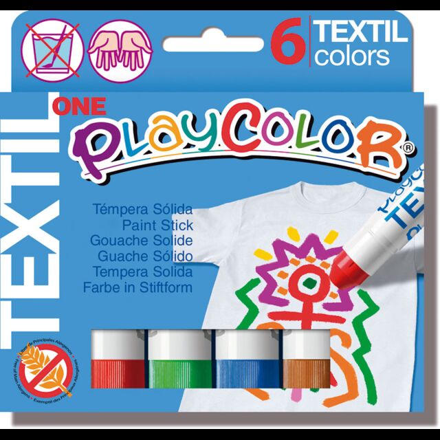 Playcolor Textil solid paint sticks are great for painting onto most natural fabrics.