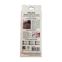 Pigma ink, invented by Sakura over 30 years ago, continues to be the most reliable permanent ink on the market today. It is waterproof, fade and chemical resistant and will not smear of feather when dry. It also deosn't bleed through most papers.