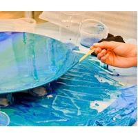 Solid Solutions Epoxy Resin Art Kit is a two part epoxy that is clear, flexible and self leveling providing a glass like coating over surfaces. Poured over existing artwork a single coating can equal up to 50 coats of varnish. It can be used as is or with pigments and dyes to provide a 3D glass art look. Suitable for varnishing, decoupage, coating wood, photographs, metal badges and more.