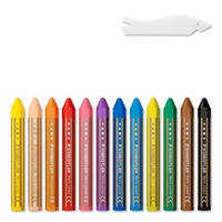 This wax crayon in bright colours is ideal for colouring large areas. The hexagonal shape prevents rolling off the table.
