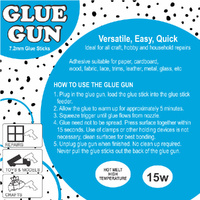 Sullivans High Temperature Glue Gun (15W) heats up quickly and ensures a secure bond. It is versatile, quick and easy to use. Ideal for all craft, hobby and household repairs. Use with 7.2mm diameter glue sticks.